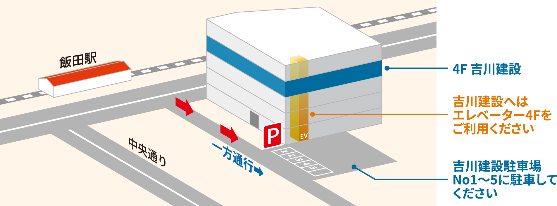 ■当社にお越しの際は、エレベータ4Fをご利用ください。